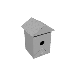 | Make a bird house out of 4 pieces: 1. The roof. 2. The walls with base. 3. The perch. 4. The removable tray that slides in and out from the bottom of the house to remove the trash. The roof should be attached with pegs. | |||